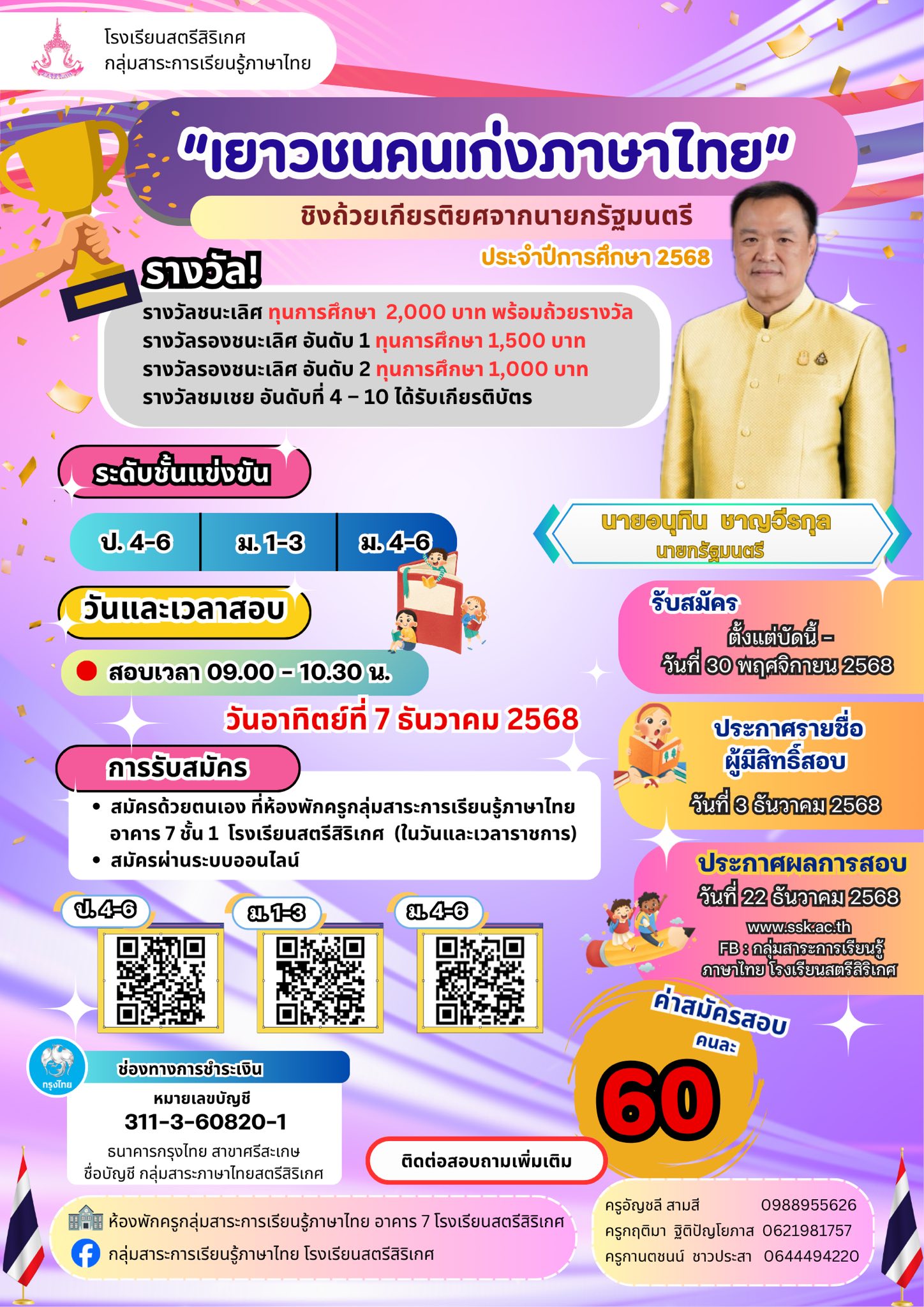 ชิงถ้วยเกียรติยศจากนายกรัฐมนตรี ประจำปีการศึกษา 2568